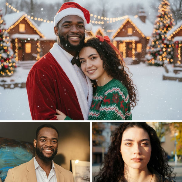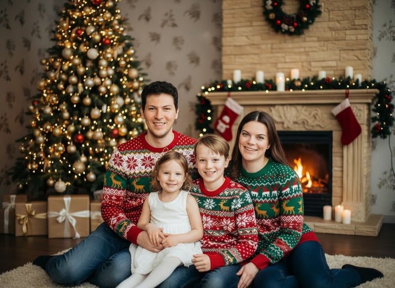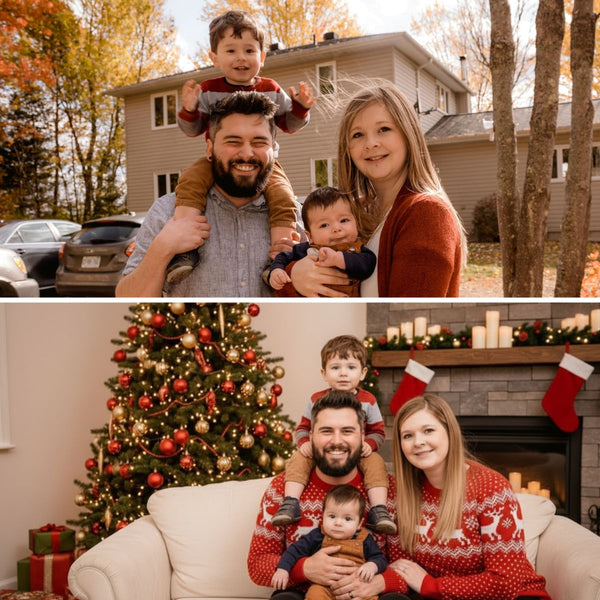 Turn your family photo into a warm, cinematic Christmas portrait.