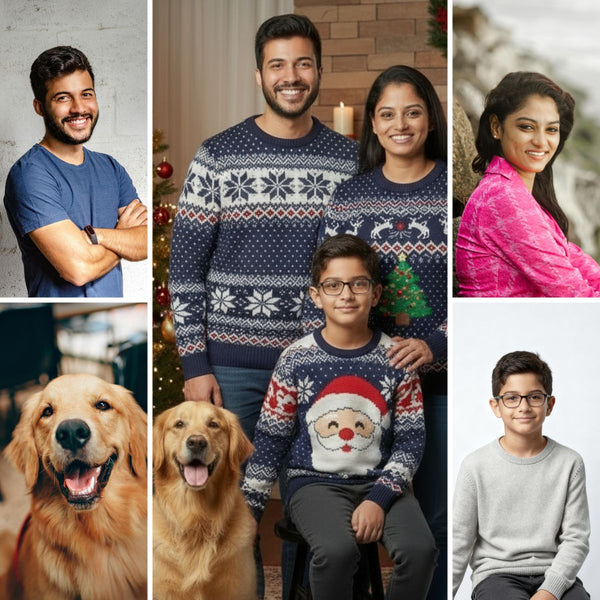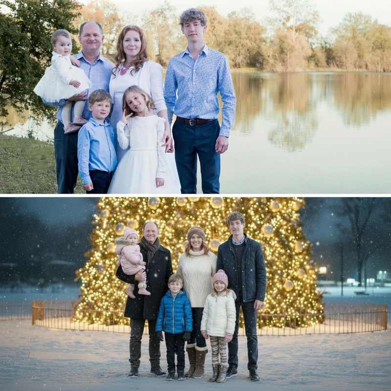 Candid snapshots, phone photos, even old pictures (in reasonable quality). We bring the holiday magic to every image.