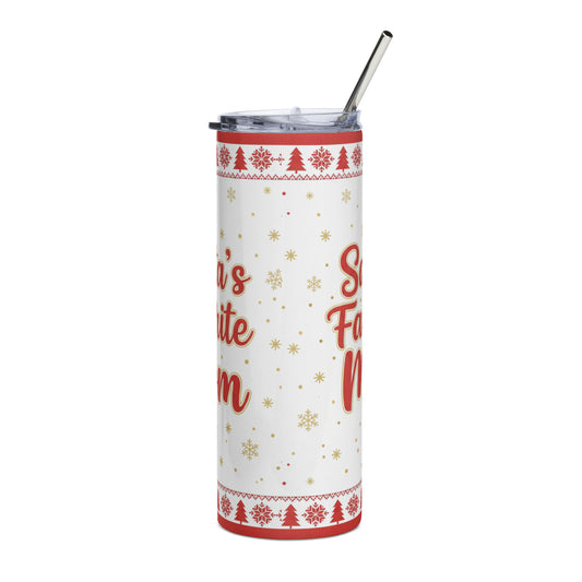Santa’s Favorite Mom – 600ml Stainless Steel Tumbler with Straw | Holiday Gift for Moms